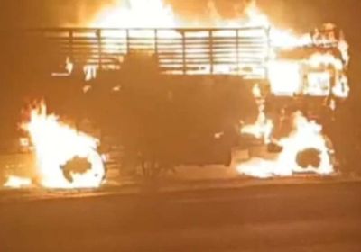 अचानक जलने लगा ट्रक, ट्रक के ड्राइवर और हेल्पर कुछ समझ पाते आग तेजी से फैल गई, कूदकर बचाई जान
