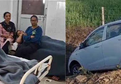 10 फिट गहरे गड्डे में गिरी कार, 6 लोग घायल