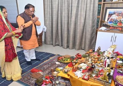 मुख्यमंत्री विष्णु देव साय ने की गोवर्धन पूजा, बोले—‘प्रदेश में हर ओर शांति और समृद्धि फैले’