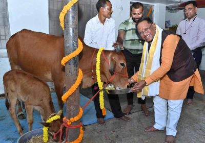 रायपुर में गोवर्धन पूजा का उत्सव, मुख्यमंत्री ने गौसेवा कर प्रदेशवासियों के कल्याण की कामना की