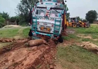 गायों पर मौत बनकर टूटा ट्रक: रफ्तार की भेंट चढ़े मासूम मवेशी