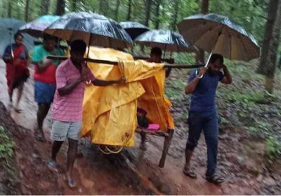 बारिश के कारण नहीं पहुंची एंबुलेंस, मरीज को तिरपाल से ढक, खाट पर लिटा सात किमी पैदल चले परिजन