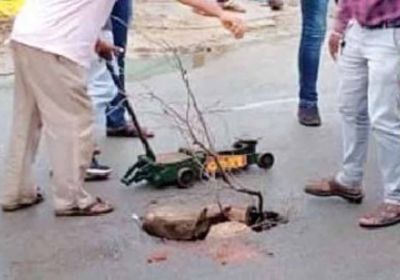 अचानक धंस गई लिंक रोड की सड़क, तेज रफ्तार कार का चक्का फंसा, बारिश से निर्माण कार्यो की खुली पोल