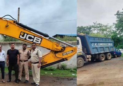 अवैध रेत उत्खनन के खिलाफ बड़ी कार्रवाई, अवैध रेत खनन में लगी मशीन और 7 हाईवा जब्त