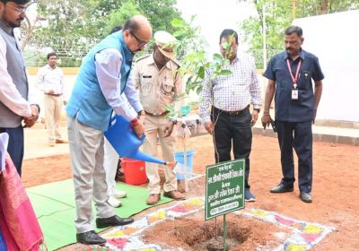 राज्यपाल ने कलेक्ट्रेट परिसर एवं एकलव्य विद्यालय मानपुर में मौलश्री पौधारोपण