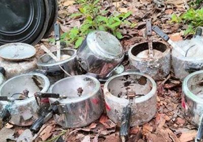 धमतरी के चमेदा जंगल में सर्चिंग अभियान में नक्सलियों के 10 कुकर, राशन और अन्य सामग्री बरामद की