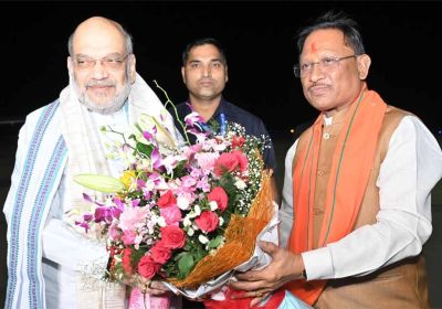 केंद्रीय गृह मंत्री शाह का मुख्यमंत्री साय ने स्वामी विवेकानंद विमानतल पर किया आत्मीय स्वागत