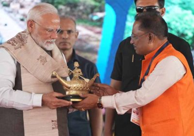 मुख्यमंत्री विष्णुदेव साय ने प्रधानमंत्री नरेंद्र मोदी को भेंट किया बिलासा देवी केवट का मोमेंटो