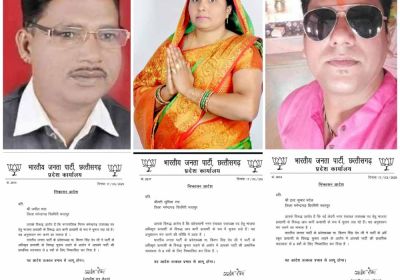 नगरी निकाय चुनाव में पार्टी विरोधी कार्य करने वाले जमील शाह, इंद्रभान, सुमिला को पार्टी ने किया निष्कासित