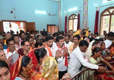उपमुख्यमंत्री शर्मा माँ दुर्गा की महाआरती में शामिल हुए, भजन सेवा की, नवरात्र पर्व पर किया मंदिरों एवं पंडालों का दर्शन
