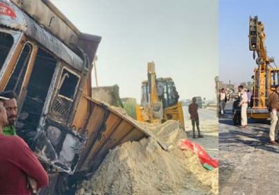 ट्रेलर ने ट्रक को मारी जोरदार टक्कर, ट्रेलर चालक की जलकर मौत