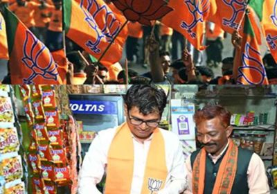 छत्तीसगढ़-रायपुर से भाजपा महापौर प्रत्याशी के ठेले में मंत्री ने बनाई चाय