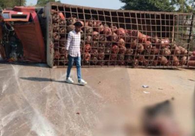 बालोद में हादसा: गैस सिलेंडर से भरा ट्रक पलटा, ट्रक चालक की मौत