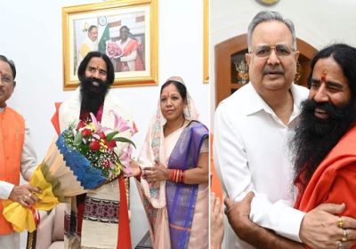 सीएम साय और विस अध्यक्ष रमन सिंह से मिले योग गुरु स्वामी रामदेव