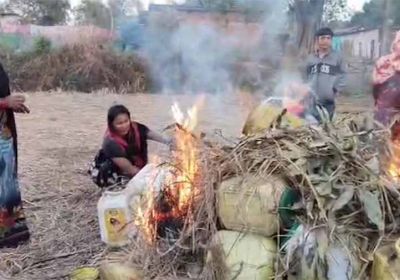 अवैध कच्ची महुआ शराब पर महिलाओं का फूटा गुस्सा, दर्जनों जरीकेनों को इकट्ठा कर लगा दी आग