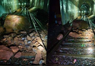 केके रेलमार्ग पर बाधा: पत्थर गिरने से रुकीं यात्री ट्रेनें, यात्रियों को भारी दिक्कतें