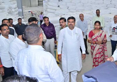 हाथकरघा उद्योग को बढ़ावा देने ग्रामोद्योग मंत्री का बुनकर संघ गोदाम दौरा
