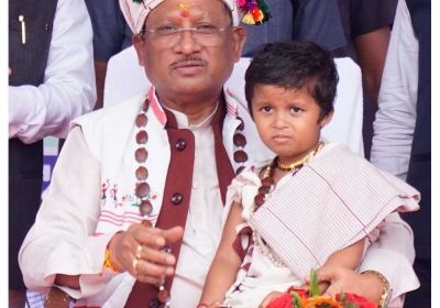 मुख्यमंत्री साय का आत्मीय और वात्सल्यपूर्ण व्यवहार : नन्ही बच्ची भूमिका बघेल को दुलारते हुए खिलाया महुआ लड्डू