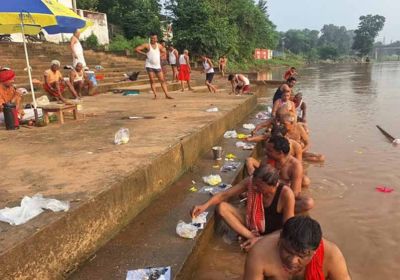 महामाया मंदिर के छठ घाट पर पितृ तर्पण-पिंडदान की धूम, कन्हर नदी किनारे आस्था का मेला