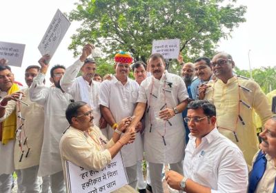 कांग्रेस विधायकों ने इंजेक्शन और नकली ड्रग्स की सामग्री लेकर विरोध प्रदर्शन किया