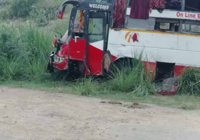 आगरा लखनऊ एक्सप्रेसवे पर डबल डेकर बस गिरने से दो यात्रियों की मौत