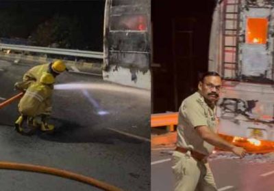 बाल- बाल बचे 60 यात्री, अचानक आग का गोला बनी प्राइवेट बस