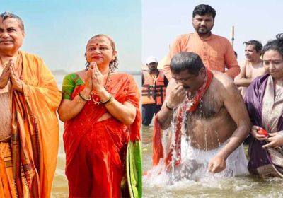 केंद्रीय मंत्री नितिन गडकरी और धर्मेंद्र प्रधान ने संगम में लगाई डुबकी