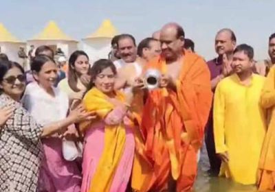त्रिवेणी संगम में लोकसभा स्पीकर ओम बिरला ने लगाई आस्था की डुबकी