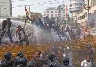 बेरोजगारी के खिलाफ यूथ कांग्रेस का प्रदर्शन, पुलिस और प्रदर्शनकारियों के बीच थोड़ी झड़प, वाटर कैनन से पानी का किया छिड़काव