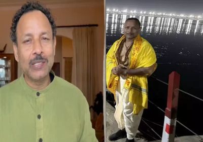 समाजवादी पार्टी के प्रवक्ता अनुराग भदौरिया ने संगम में स्नान किया, महाकुंभ में पुजारी की वेश में नजर आए