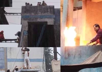 गृहस्वामी ने जलता सिलेंडर फेंका नीचे, सीढ़ियों पर गिरा, मची भगदड़