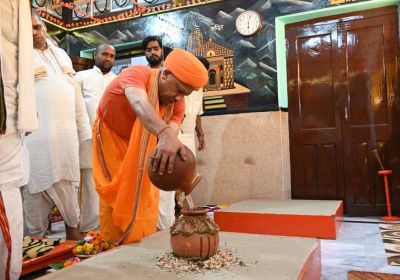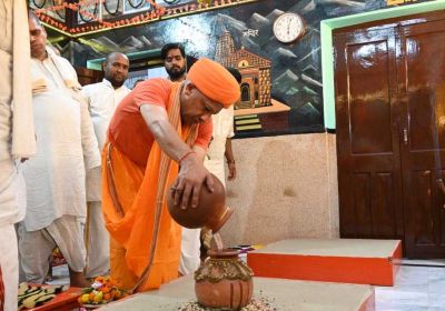 गोरखनाथ मंदिर के शक्तिपीठ में गोरक्षपीठाधीश्वर एवं मुख्यमंत्री योगी आदित्यनाथ ने की कलश स्थापना