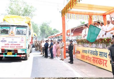 मुख्यमंत्री योगी आदित्यनाथ ने बाढ़ प्रभावित राज्यों के लिए राहत सामग्री से भरे ट्रकों को दिखाई हरी झंडी