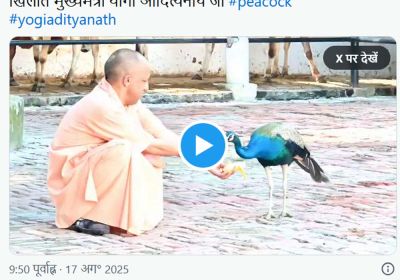 गोरखनाथ मंदिर के दौरे पर मुख्यमंत्री, योगी के हाथों में केला, सामने से दौड़कर आया मोर फिर…