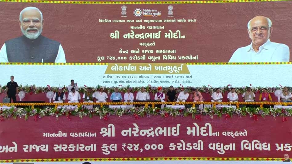 - प्रधानमंत्री नरेन्द्र मोदी ने गुजरात के दाहोद में 24,000 करोड़ रुपये से अधिक की लागत वाली विभिन्न विकास परियोजनाओं का शिलान्यास, उद्घाटन और लोकार्पण किया