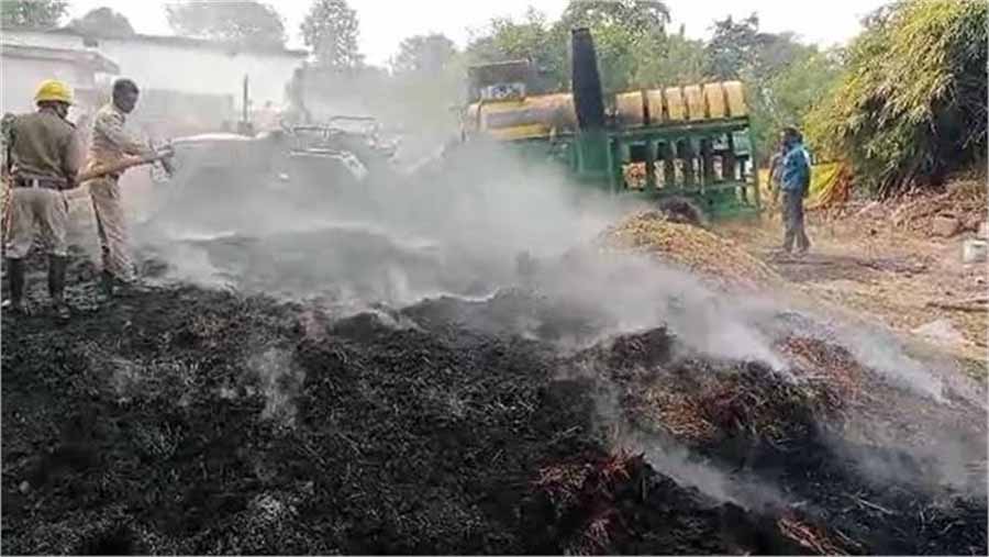 धनबाद के बरवाअड्डा कृषि बाजार समिती में टला बड़ा हादसा, कचरे के ढेर में लगी भीषण आग