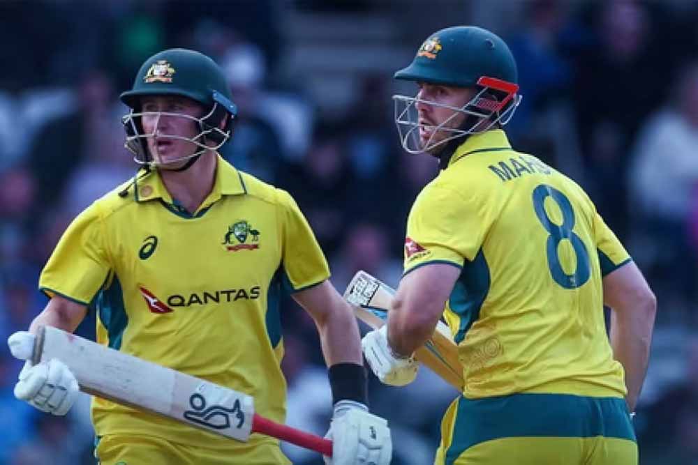 मेजबान ऑस्ट्रेलिया ने मैके के स्टेडियम में टॉस जीतकर बैटिंग चुनी। हेड और मार्श ने दमदार शुरुआत दिलाई। दोनों ने पहले विकेट के लिए 250 रनों की साझेदारी की। ऑस्ट्रेलिया को पहला झटका 35वें ओवर में हेड के रूप में लगा, जो स्पिनर केशव महाराज का शिकार बने। उन्होंने 103 गेंदों में 142 रन बनाने के बाद डेवाल्ड ब्रेविस को कैच थमाया। हेड के बल्ले से 17 चौके और पांच छक्के निकले। मार्श को सेनुरन मुथुसामी ने 37वें ओवर में रिकेल्टन के हाथों लपकवाया। उन्होंने 106 गेंदों में 100 रन जुटाए, जिसमें 6 चौके और 5 सिक्स शामिल हैं। मार्श ने इस दौरान तीन हजार वनडे रन कंप्लीट किए।