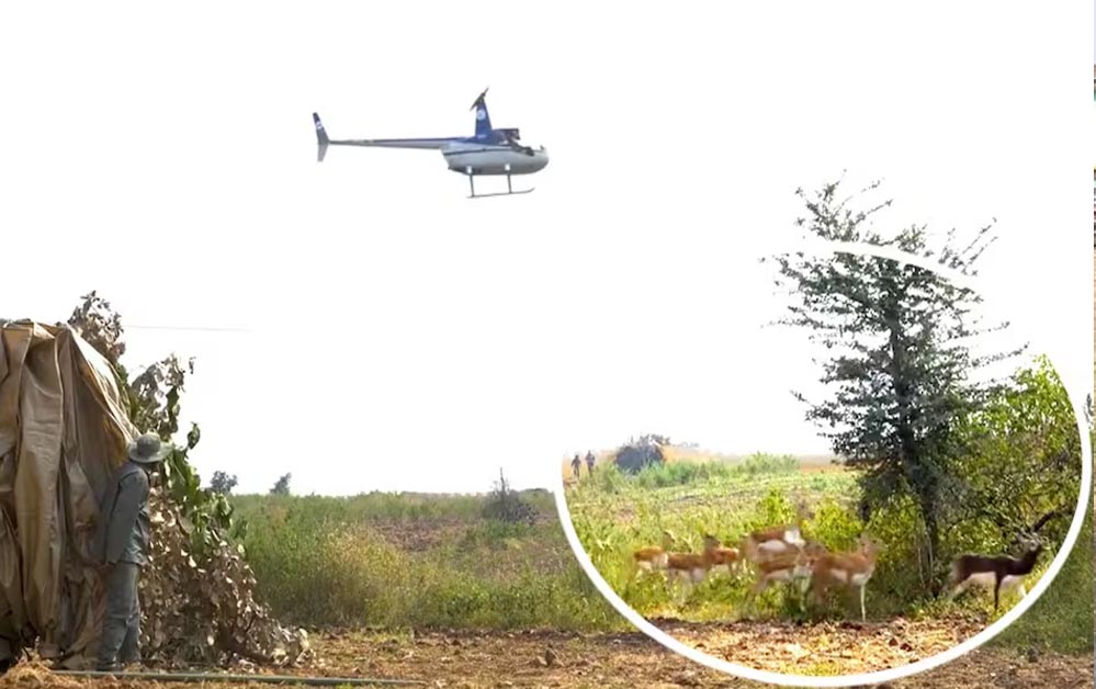 फसल बचाने की जुगाड़: शाजापुर में हेलीकॉप्टर से हांका देकर हिरणों को किया काबू