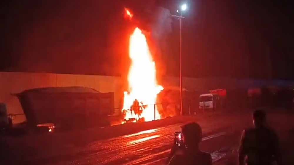 कोयले से भरे ट्रक में आगजनी, धू-धूकर जला वाहन