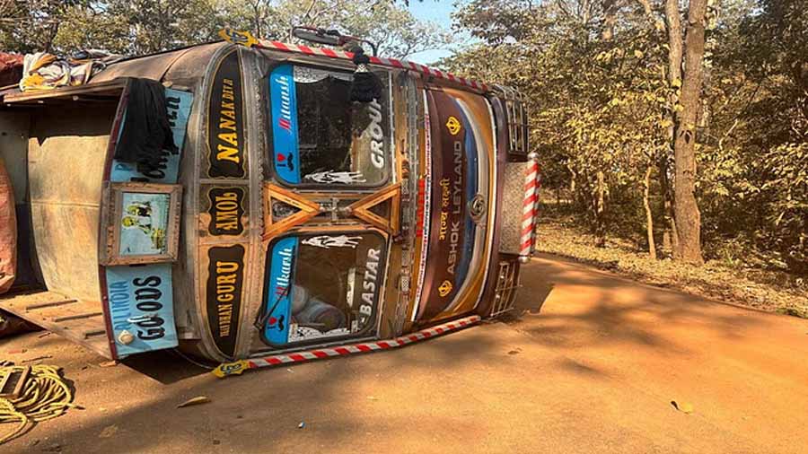 जगदलपुर से सुकमा जा रहा चावल से भरा ट्रक दरभा घाटी पर पलटा