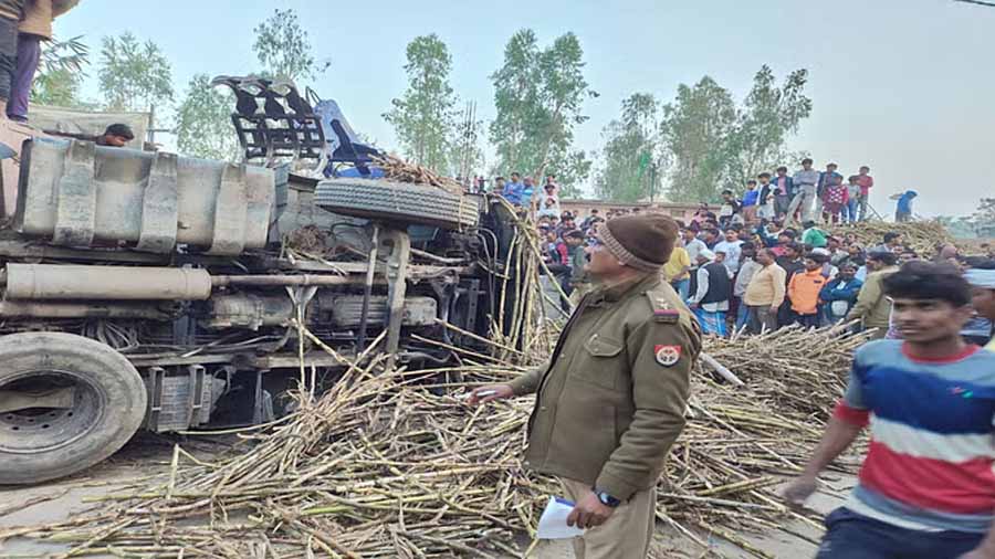 लखीमपुर खीरी में सड़क किनारे खड़े बच्चों पर पलटा गन्ने से भरा ट्रक