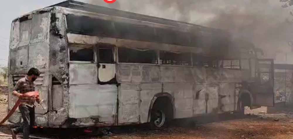 एमपी के शाजापुर में हुआ हादसा: बस में लगी आग, कुछ ही मिनट जलकर खाक