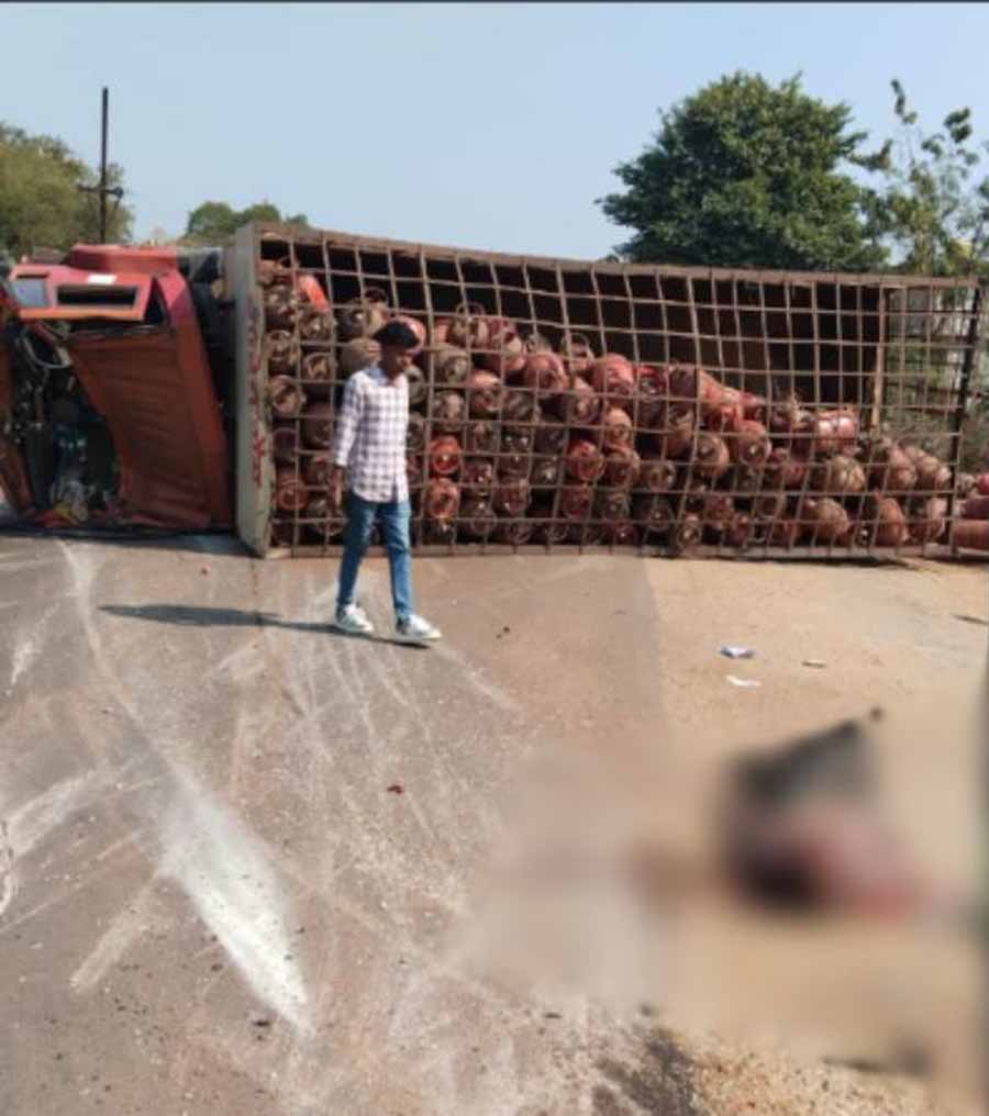 बालोद में हादसा: गैस सिलेंडर से भरा ट्रक पलटा, ट्रक चालक की मौत