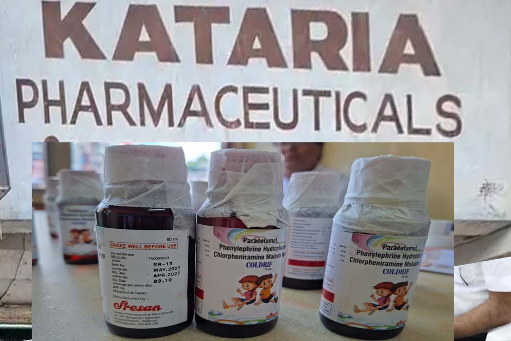 कटारिया फार्मास्यूटिकल द्वारा ही छिंदवाड़ा में तमिलनाडु की श्रीसन फार्मास्यूटिकल द्वारा निर्मित कोल्ड्रिफ कफ सिरप की सप्लाई की गई थी, जिसके पीने से मासूम बच्चों की मौत हो गई। जांच के दौरान कटारिया फार्मास्युटिकल्स द्वारा दुकान का लाइसेंस समेत अन्य दस्तावेज प्रस्तुत किए गए, लेकिन उस गोदाम से जुड़ा कोई दस्तावेज या अनुमति प्रस्तुत नहीं किया, जहां दवाओं का स्टॉक किया गया।