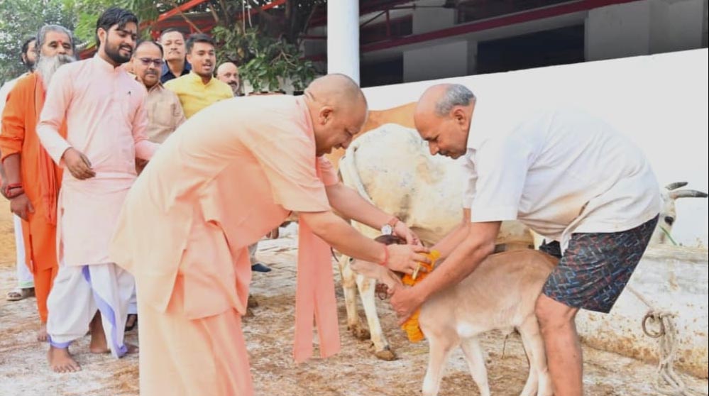 गोरखनाथ मंदिर की गोशाला में मुख्यमंत्री ने की गोवर्धन पूजा