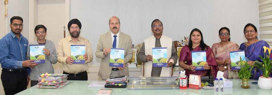 कृषि मंत्री रामविचार नेताम ने आज यहां नया रायपुर स्थित अपने निवास कार्यालय में इंदिरा गांधी कृषि विश्वविद्यालय द्वारा प्रकाशित कृषि दर्शिका 2025 का विमोचन किया। कृषि मंत्री ने कहा कि कृषि दर्शिका में इंदिरा गांधी कृषि विश्वविद्यालय द्वारा किये जा रहे अनुसंधान एवं विस्तार कार्यों के साथ ही नवीनतम कृषि प्रौद्योगिकी तथा किसानों के लिए केन्द्र एवं राज्य सरकार द्वारा संचालित विभिन्न योजनाओं की जानकारियों को शामिल किया गया है। यह कृषि दर्शिका किसानों के लिए बेहद उपयोगी साबित होगा। उन्होंने आशा व्यक्त की कि कृषि विश्वविद्यालय छत्तीसगढ़ के किसानों के हित में इसी प्रकार निरंतर प्रयासरत रहे। मंत्री श्री नेताम ने कृषि दर्शिका के प्रकाशन हेतु इंदिरा गांधी कृषि विश्वविद्यालय के कुलपति डॉ. गिरीश चंदेल एवं उनके सहयोगियों को बधाई एवं शुभकामनाएं दीं।