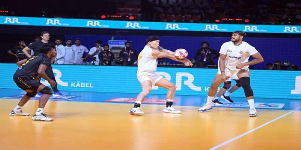 इस बीच, कप्तान मुथुसामी अप्पावु ने एक अहम मोड़ पर अपनी टीम को एकजुट किया और कोर्ट पर अहम अंतर पैदा किया। बत्सुरी ने अंगामुथु के साथ मिलकर विपक्षी टीम के कोर्ट पर लगातार आक्रमण किया और अहमदाबाद को नियंत्रण में रखने का लक्ष्य रखा। दोनों टीमों ने ज़बरदस्त डिफेंसिव स्किल दिखाया, जिससे विपक्षी टीम के लिए अंक लेना आसान नहीं रहा। आख़िरकार अखिन ने ज़बरदस्त स्पाइक लगाकर अहमदाबाद के लिए विजयी अंक हासिल किया।