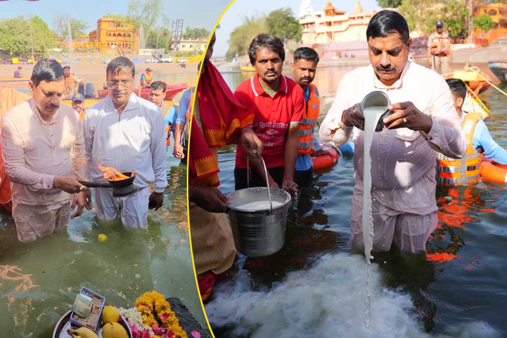 मुख्यमंत्री डॉ. यादव ने माँ क्षिप्रा के घाटों की सफाई कर जल गंगा संवर्धन अभियान में सहभागिता की