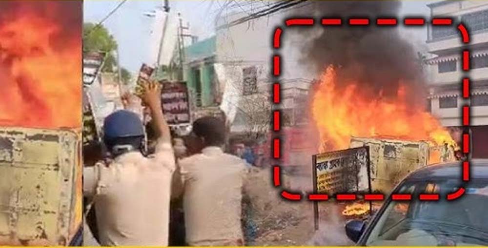 मुर्शिदाबाद जिले के जंगीपुर क्षेत्र में वक्फ कानून के खिलाफ सड़कों पर आगजनी, पत्थरबाजी