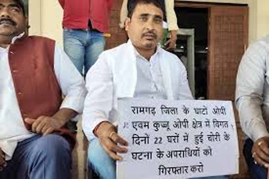वहीं मांडू से आजसू के विधायक प्रवेश द्वार भी हाथ में पोस्टर पकड़ धरने पर बैठे हैं। पोस्टर में लिखा है, "रामगढ़ जिला के घाटों ओपी एवम कुज्जू ओपी क्षेत्र में विगत दिनों 22 घरों में हुई चोरी के घटना के अपराधियों को गिरफ्तार करो।"